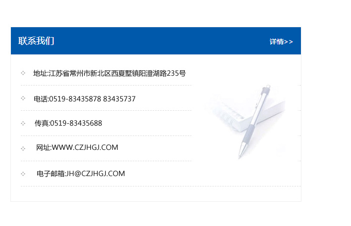 傳真:0519-83435688    郵編:213135    網址:WWW.czjhgj_com.cucupet.com    電子郵箱:JH@czjhgj_com.cucupet.com